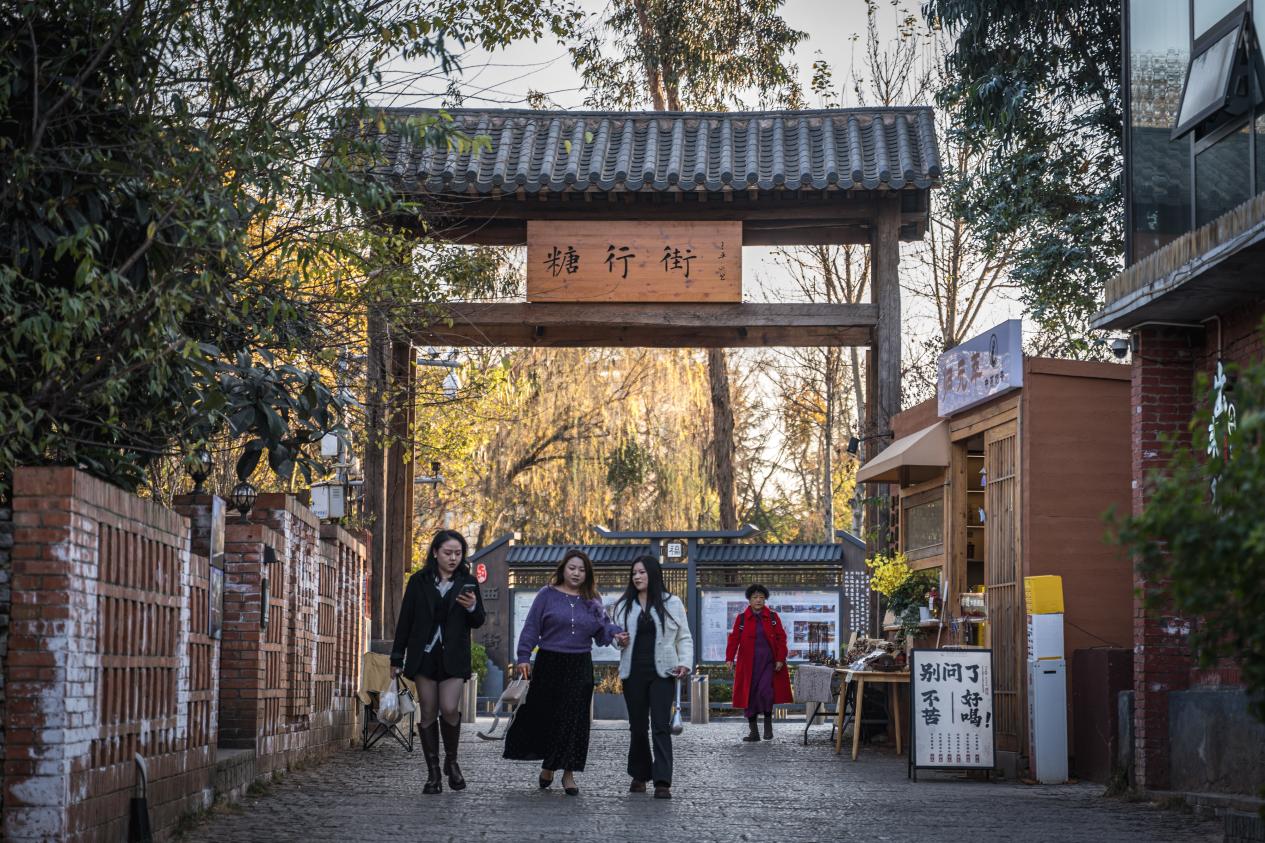 游客在曲靖市西门街片区漫步休闲(资料图)。
