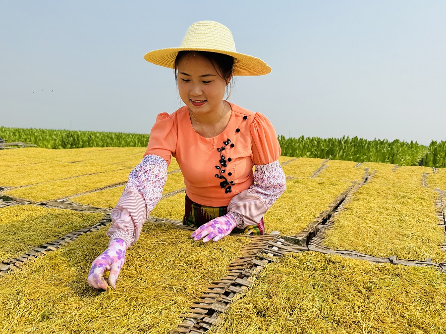 德宏州陇川县晒黄烟丝调制(资料图)。