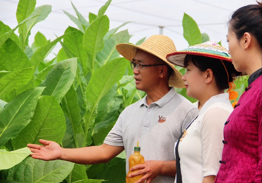 云南香料烟公司技术人员指导农户种植雪茄烟叶(资料图)。