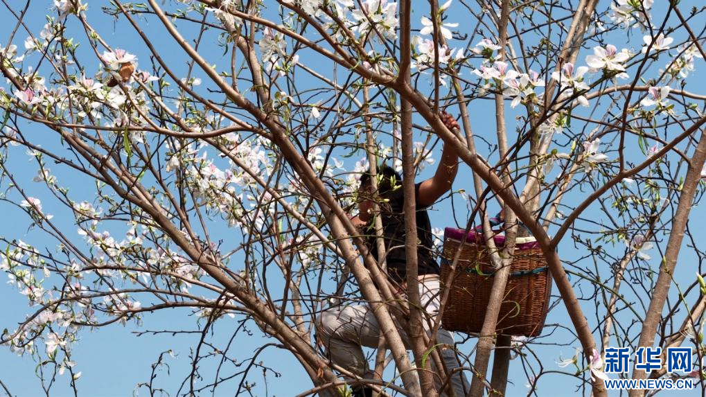 近日,云南省临沧市凤庆县郭大寨彝族白族乡的山野间,大片白露花肆意绽放。白露花学名白花羊蹄甲,既可观赏,又是当地人钟爱的时令山野食材,还兼具药用价值。村民采摘新鲜白露花,经去芯、焯水后,凉拌爽口解腻,清煮自带山野清甜,搭配腊肉、蚕豆翻炒炖煮,风味独特。在当地,白露花既是山野馈赠的时令美味,也留住了独有的春日烟火与乡土温情。(张树竹 李璇 周大海)