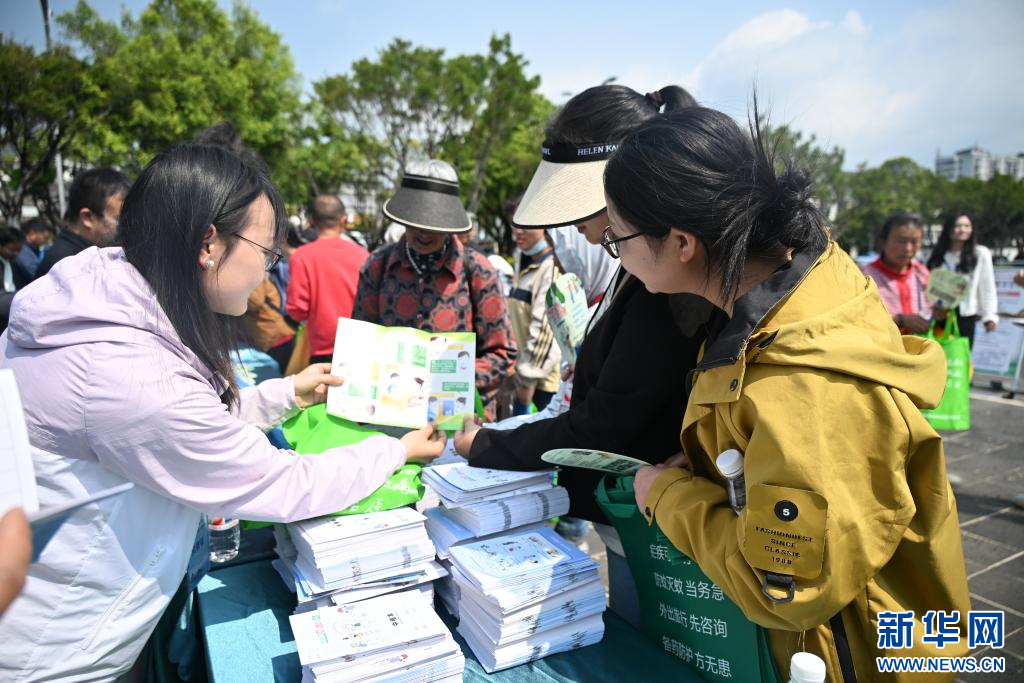 市民正在活动现场领取健康宣教物品