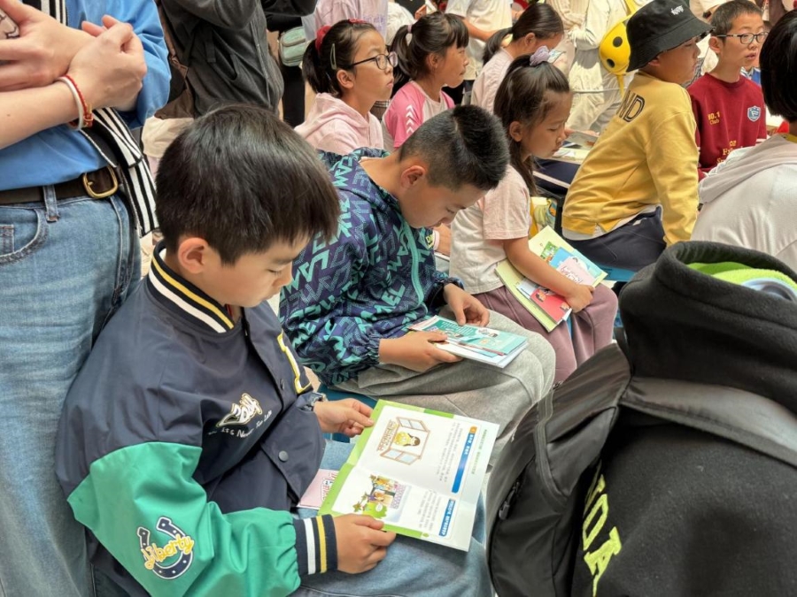 参加活动的青少年阅读健康科普折页(4月25日摄)。