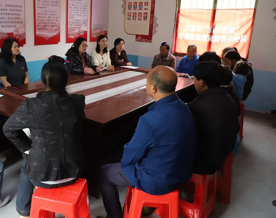 近日,在云南省昭通市水富市太平镇二溪村的三星党支部会议室,水富市“理论宣讲轻骑兵”宣讲队下设的“统战同心”和“巾帼奋进”宣讲小分队联合开展政策理论宣讲,当地村民围坐一堂、认真聆听。
