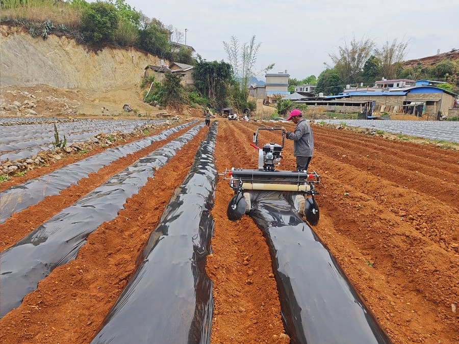 针对山区烟田地形特点,永德县烟草专卖局(分公司)大力推广适配山地的小型打塘机、覆膜机等农机装备,配套标准化起垄、膜下小苗移栽等先进技术,实现机械作业与规范种植有机统一。烟农李玉平说:“机械打塘、覆膜一天可完成10亩,相当于20个劳动力,作业效率提升3倍以上,既标准规范,又大幅减工降本,把我们从繁重体力劳动中解放出来。”