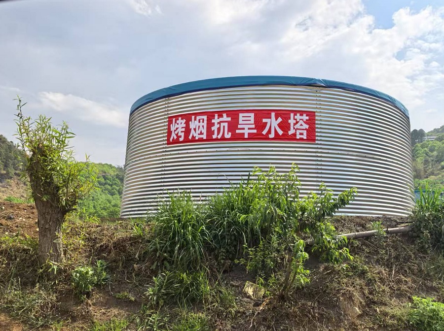德党镇大坝村烤烟抗旱水塔(4月10日摄)。赵刚 摄