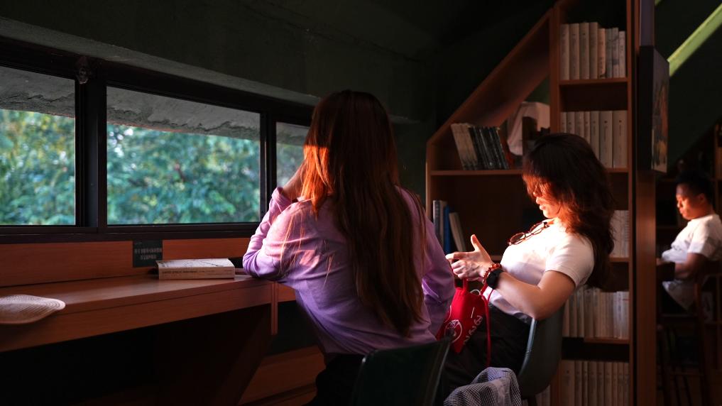 这家名为“雷牙让”的书店,坐落在芒市勐焕大金塔旁,依山坡而建。最初,主理人只是将自家藏书搬上山,把它开成一家普通书店,也为自己留一处可以静心读书的空间。
