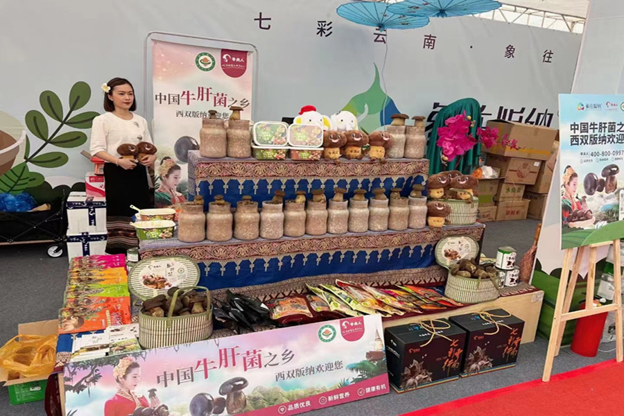 西双版纳牛肝菌产品展销(4月16日摄)。(郑红梅 摄)