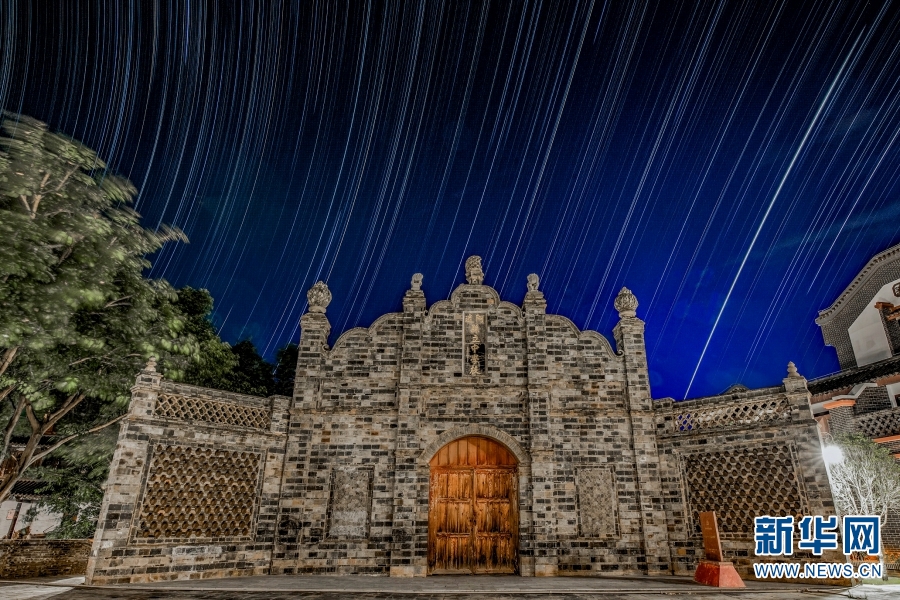 开远古建筑上空星轨(2021年7月13日摄)。新华网发(王云翔 摄)