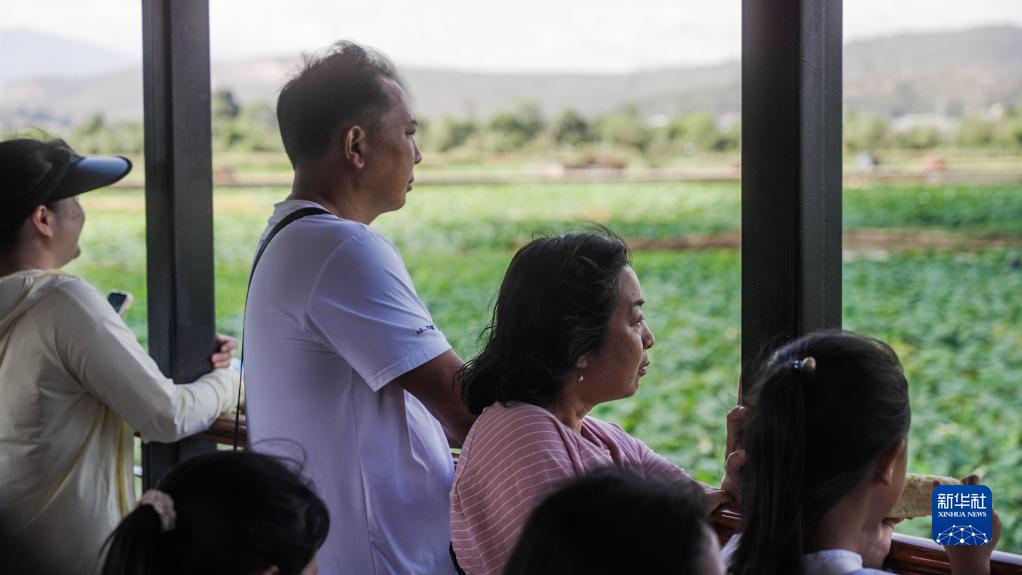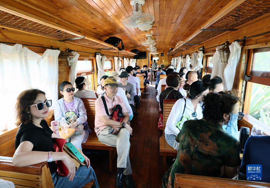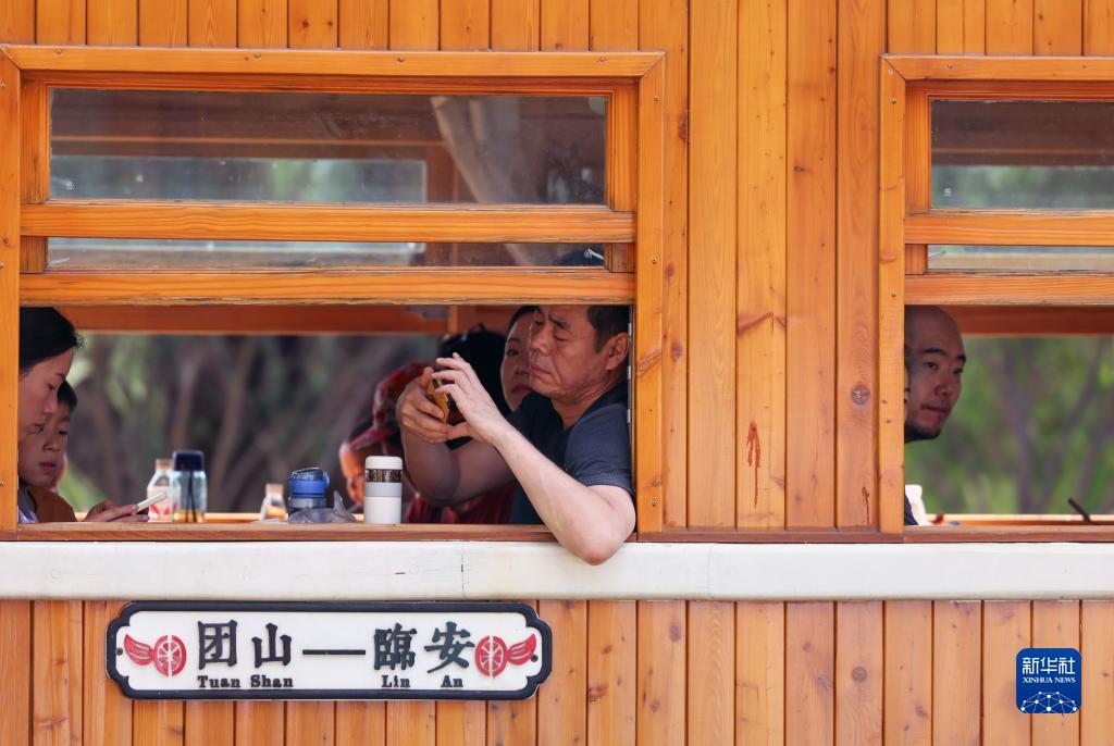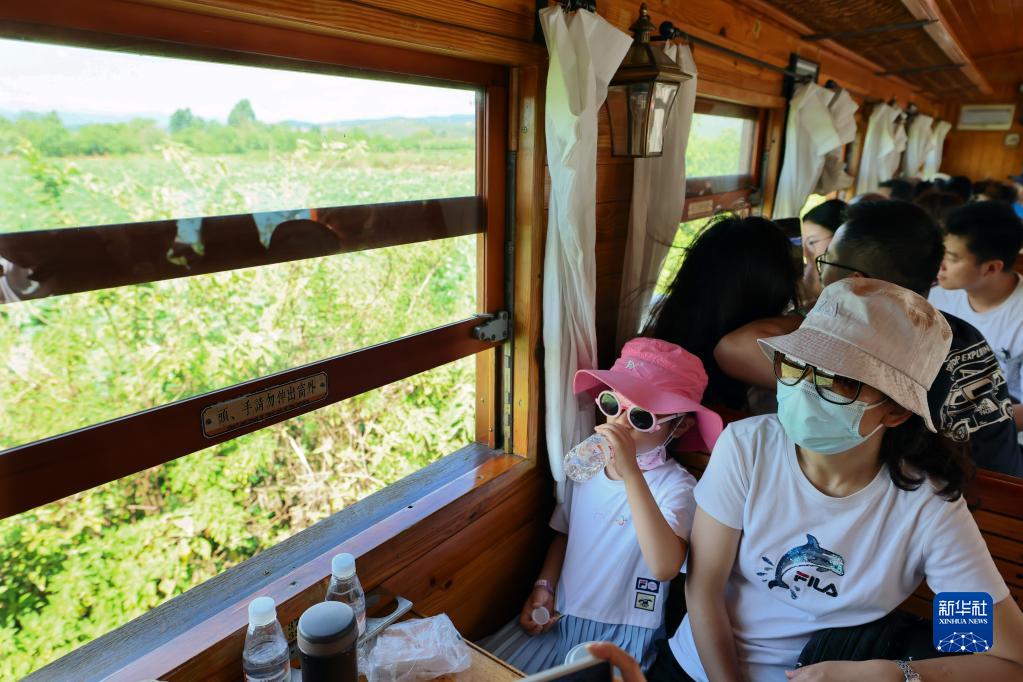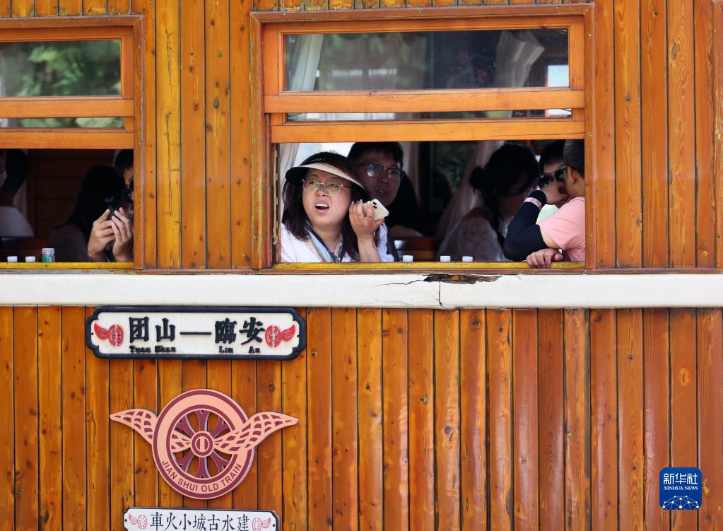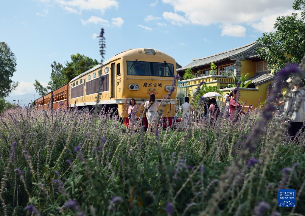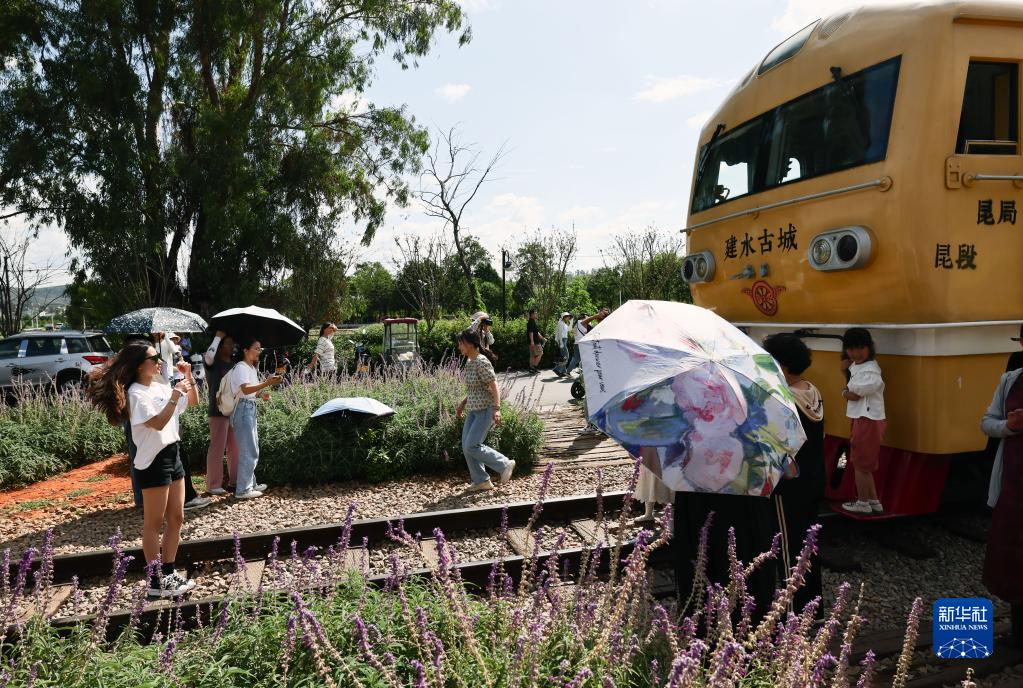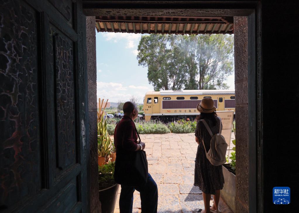 6月3日,游客在建水小火车乡会桥站游览、拍照。