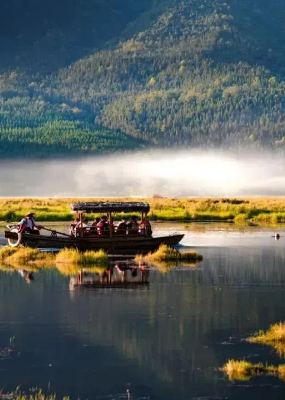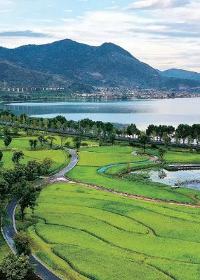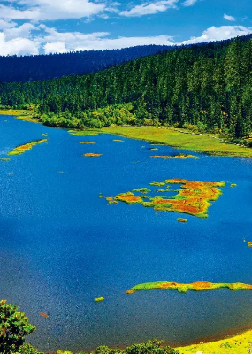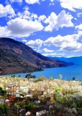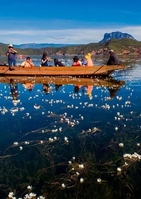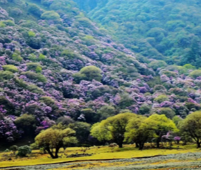 波光滟潋的湖泊,层峦叠嶂的山峰,姹紫嫣红的杜鹃花丛,好一幅春和景明图画在此展开,此地便是云南省昆明市禄劝彝族苗族自治县雪山乡神仙坝。