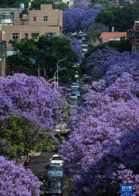 连日来,云南省昆明市、红河哈尼族彝族自治州、大理白族自治州、楚雄彝族自治州多地蓝花楹迎来盛花期。