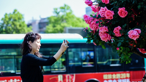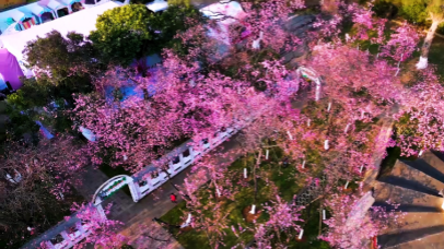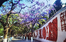 蓝花楹遇上红色浮雕 春城路美不胜收