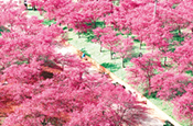 宜良山后樱花谷是目前云南地区面积最大、品种最全的樱花园区,整个樱花谷占地面积2800亩,目前盛开的樱花约140亩。