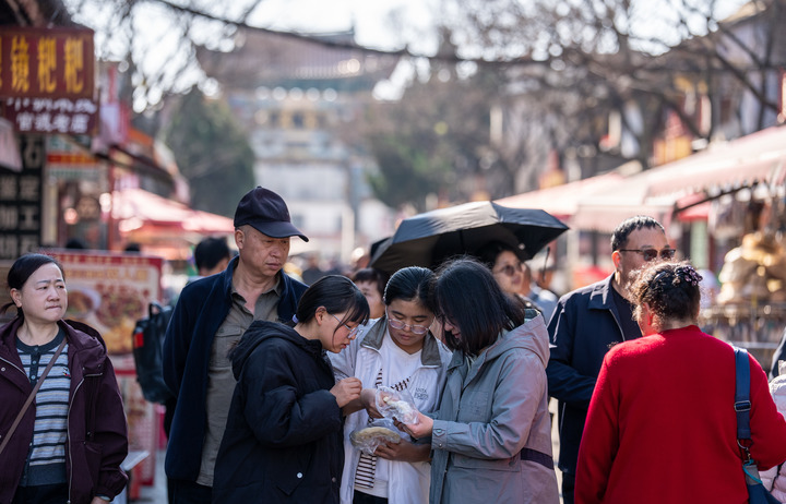 春节将至,云南丽江古城灯火璀璨,年味十足。游人络绎不绝,夜间消费市场一派热闹景象。